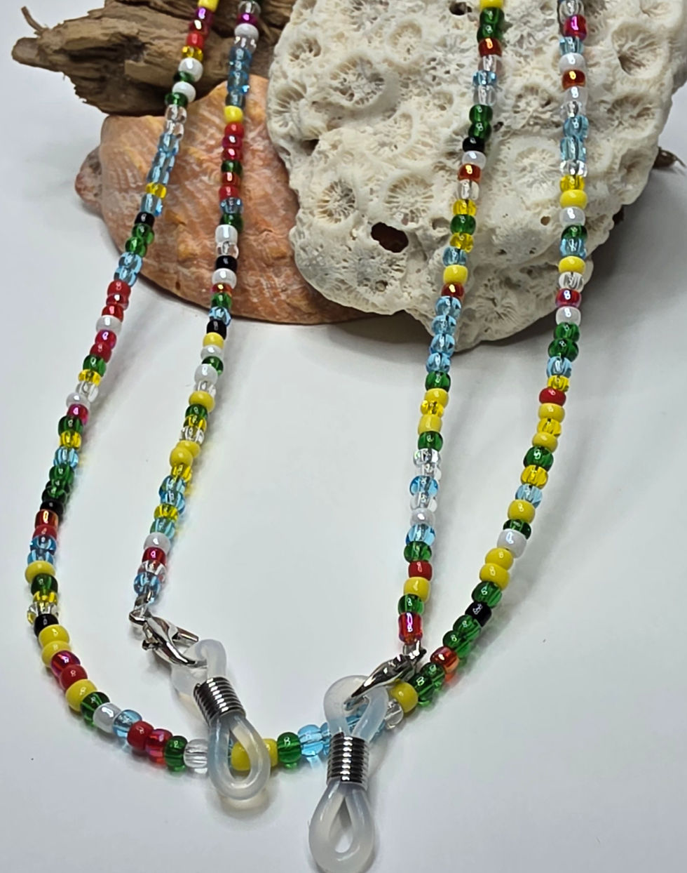 A layered look is produced by the several beaded strands that are wrapped around the wrist in the picture. This well-liked look provides movement, visual depth, and a feeling of richness. White and blue combine to produce a striking contrast, with the white serving as a crisp background for the vivid blue beads. The flat, sliced surfaces of the blue beads give the impression that they are faceted. This gives the bracelet character and shine, enhancing its ability to catch the light.